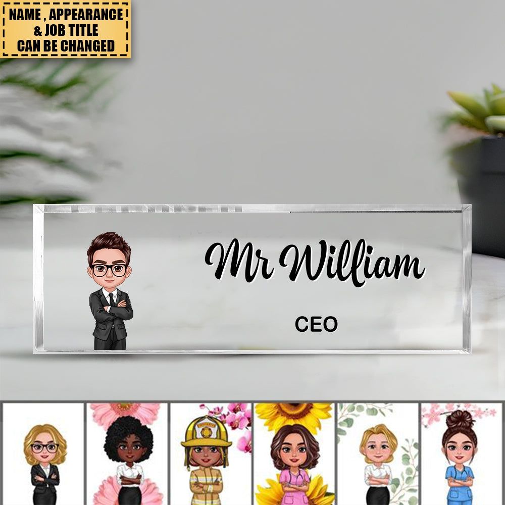 Verbessern Sie Ihren Arbeits bereich mit unserem eleganten Acryl-Schreibtisch-Namensschild, das jedem Büro einen Hauch von Raffinesse und Professional ität verleiht. Dieses stilvolle Namensschild ist perfekt, um Ihren Namen und Titel mit Klarheit und Eleganz zu präsentieren. Ob für eine Unternehmens zentrale, einen Heimast bereich oder ein durchdachtes Geschenk für einen Kollegen, dieses Acryl-Schreibtisch-Namensschild ist die perfekte Wahl.