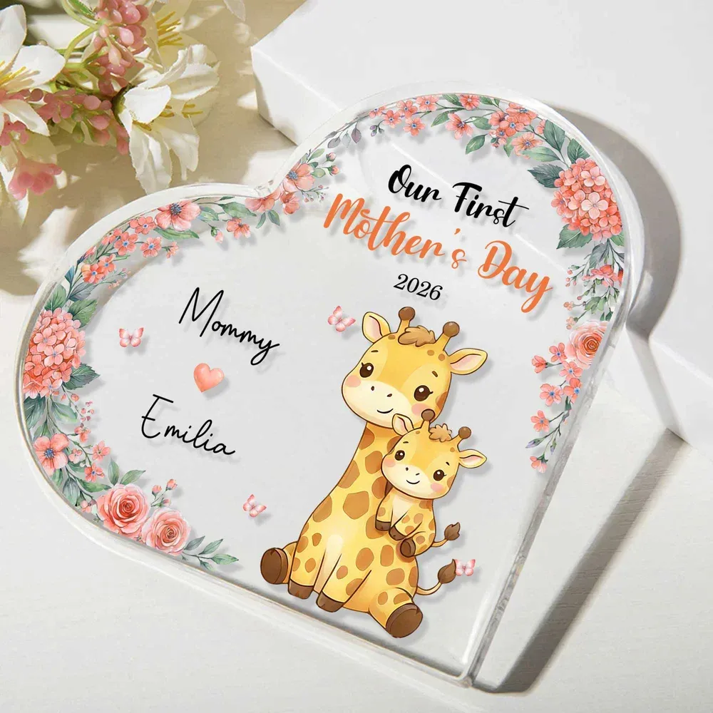 Personalisierte Acryl-Plakette zum 1. Muttertag – Niedliches Eltern-Kind-Tiermotiv im Herz-Design mit Name & Jahreszahl – Wohnaccessoire & Geschenk zum Muttertag oder Geburtstag für frischgebackene Mütter