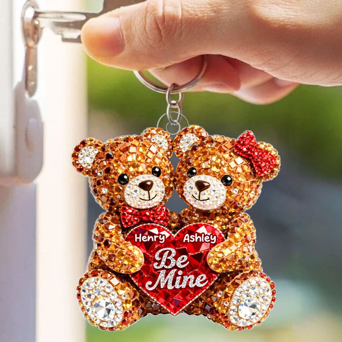 3D-Glänzendes Effekt-Bären paar-personal isierter Acryl-Schlüssel bund-herzhaftes Valentinstag-Geschenk für sie, für ihn