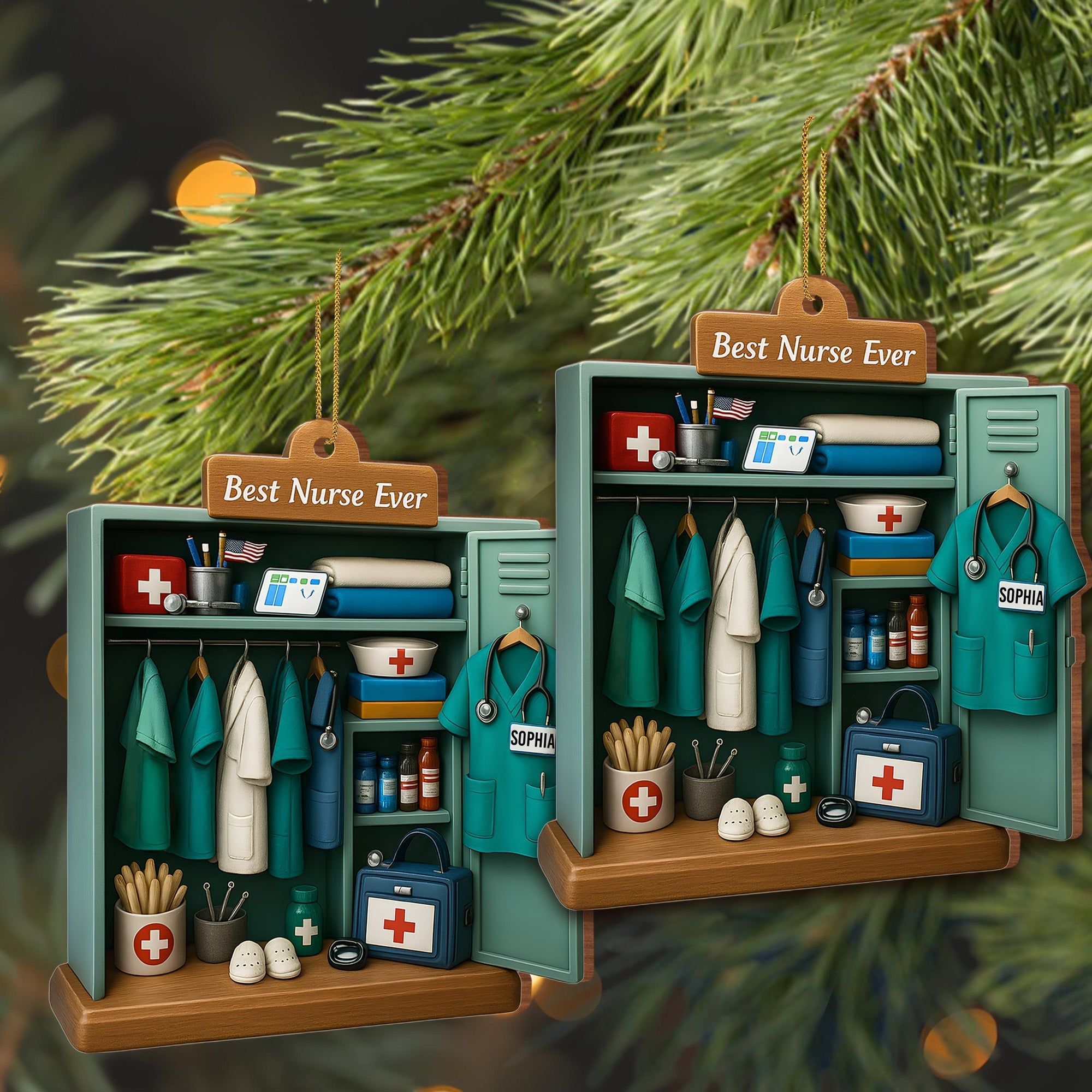 Die beste Krankenschwester aller Zeiten mit Schwesternuniform und medizinischer Ausrüstung, personalisiertes Holzornament, Geschenk für Krankenschwestern und Pflegekräfte