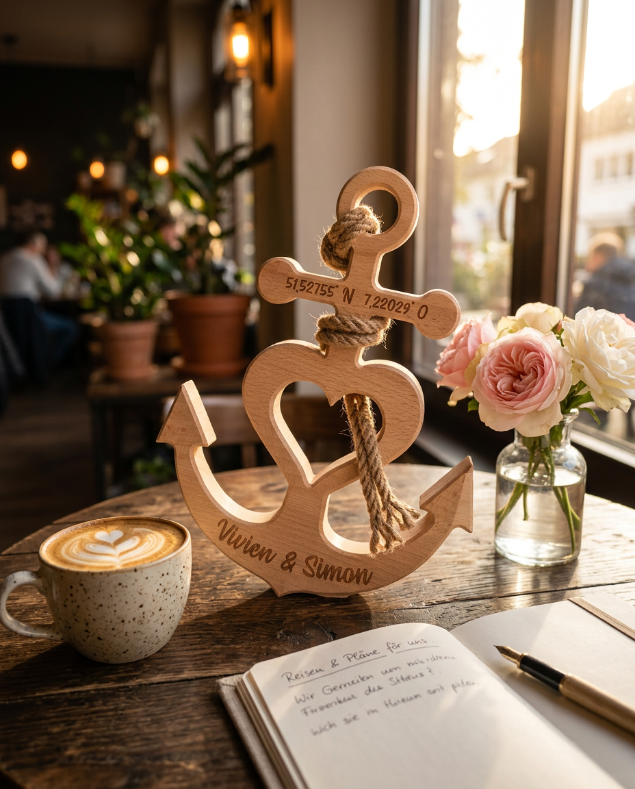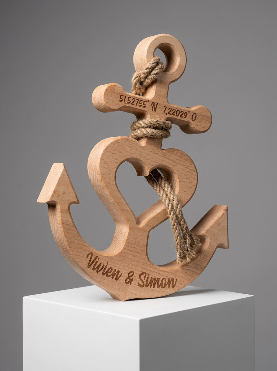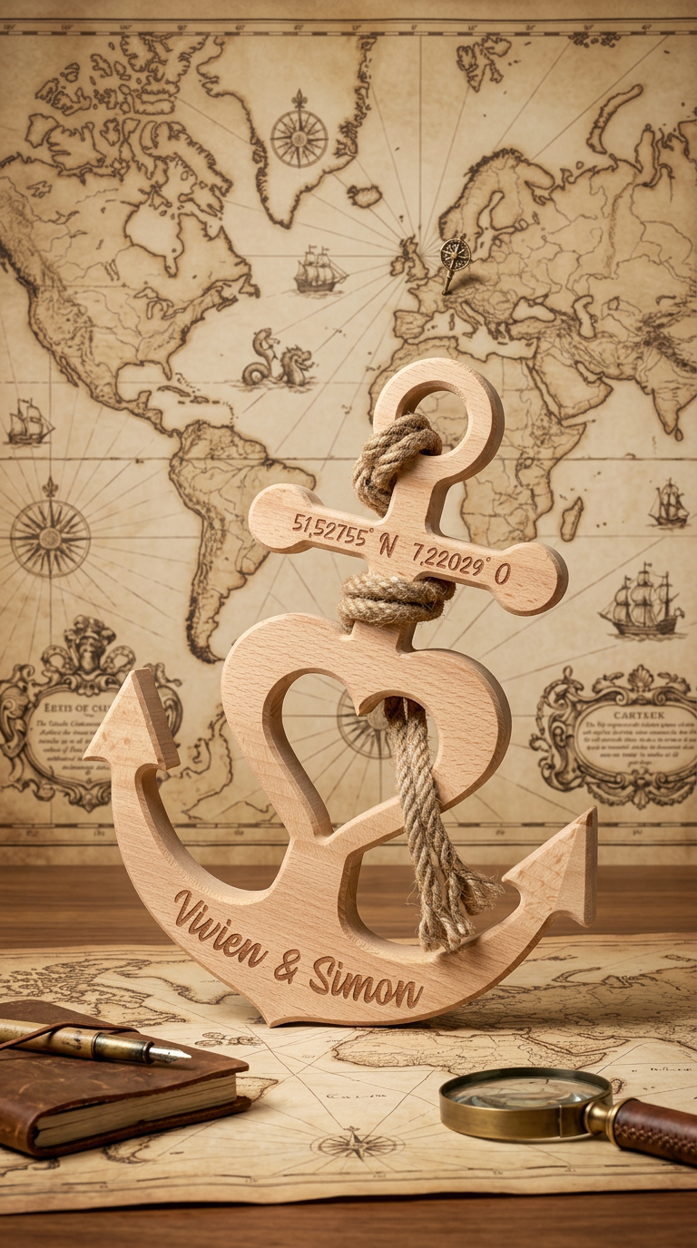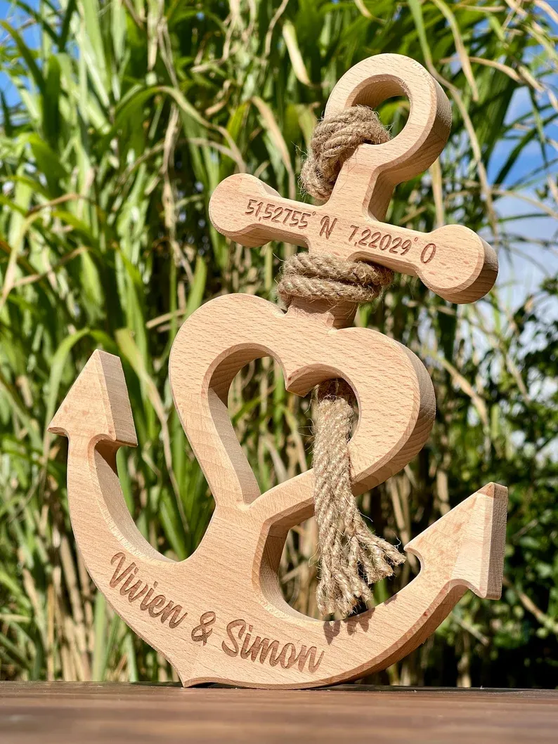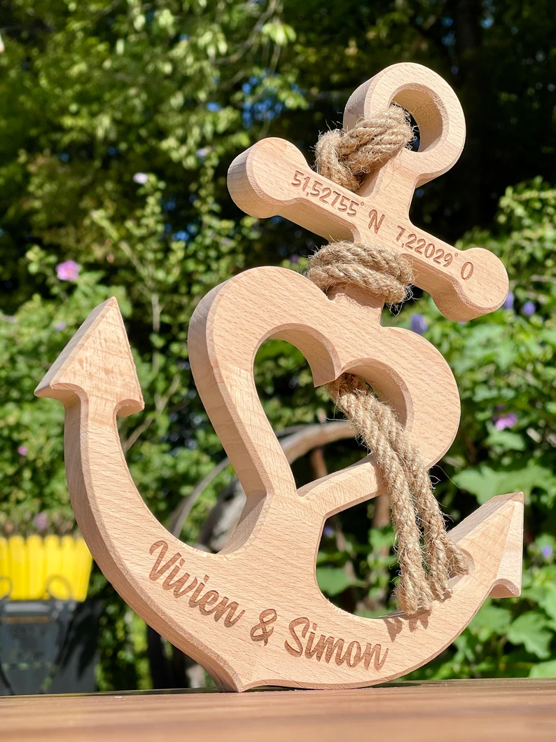 Personalisierter Holzanker mit euren Koordinaten & Namen