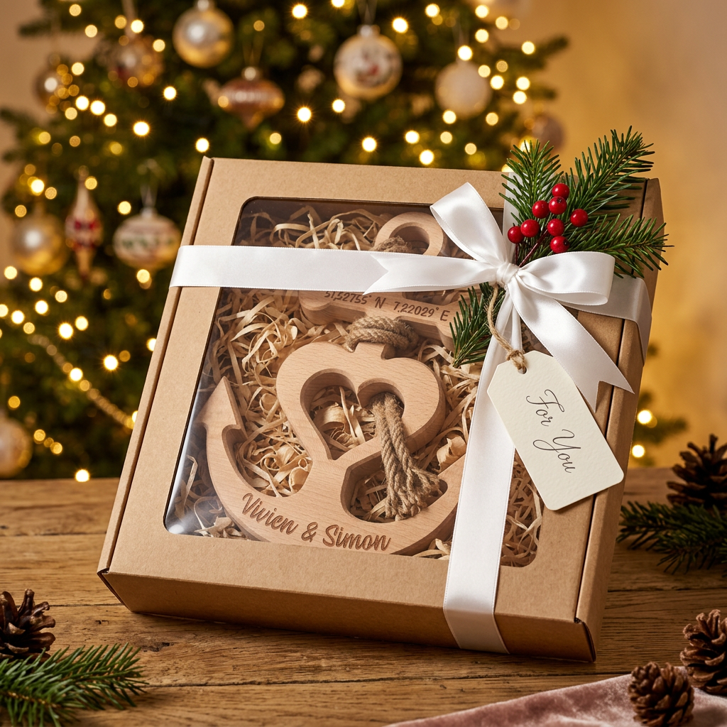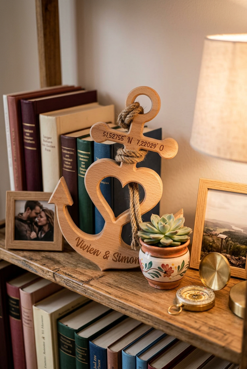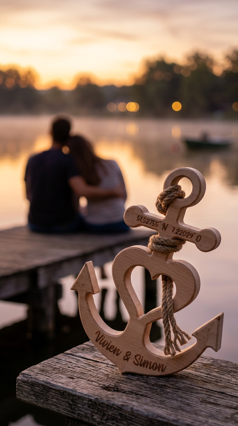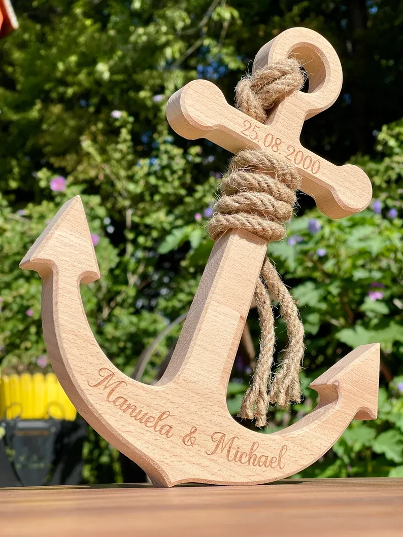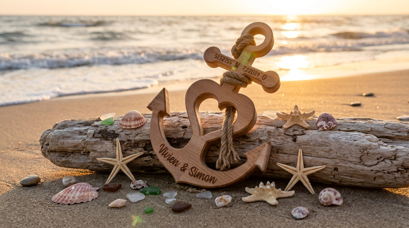Personalisierter Holzanker mit euren Koordinaten & Namen