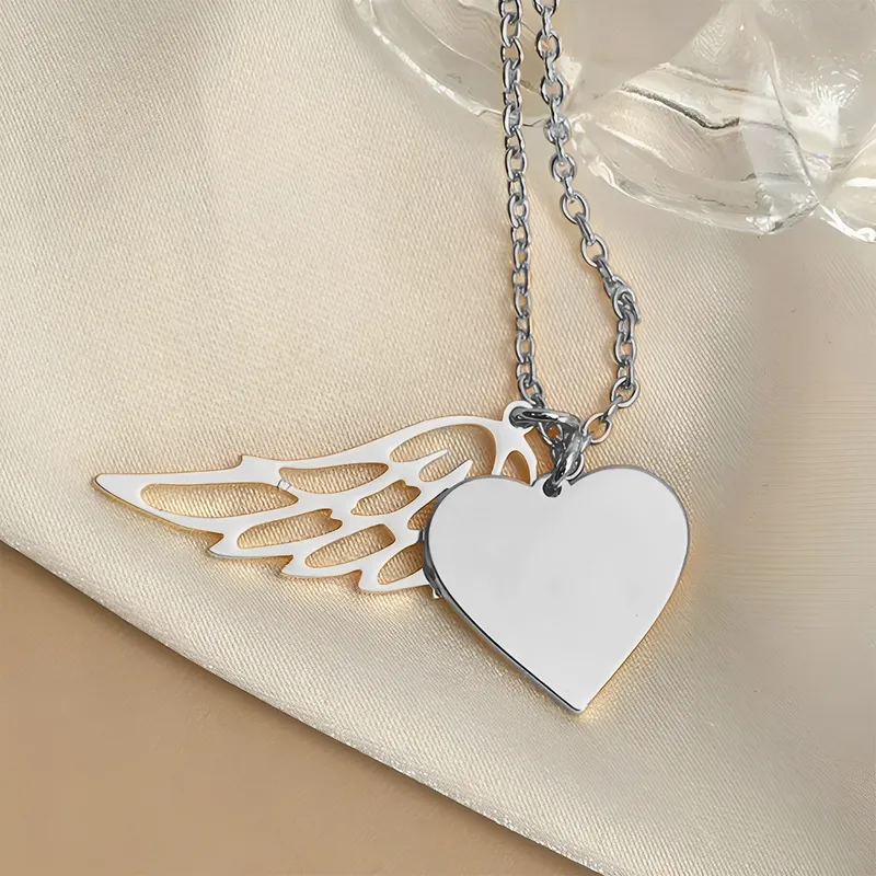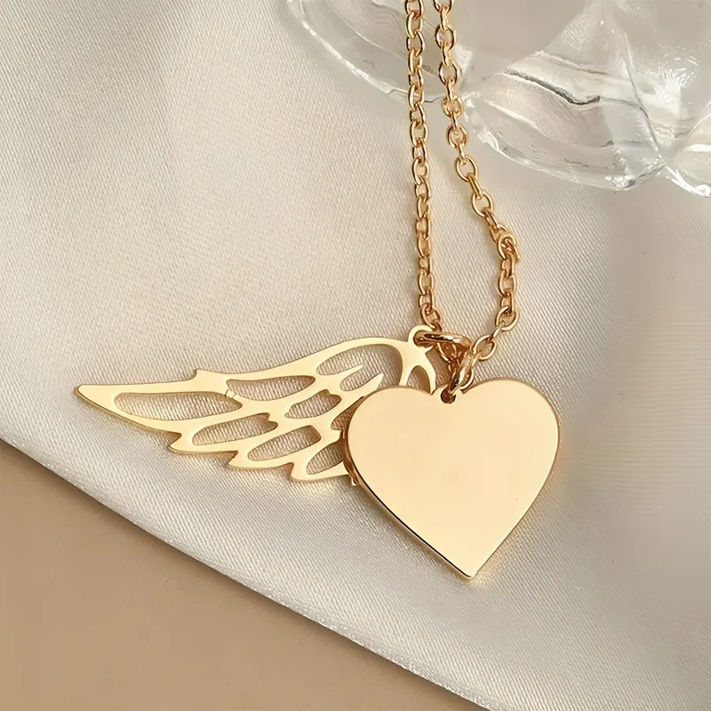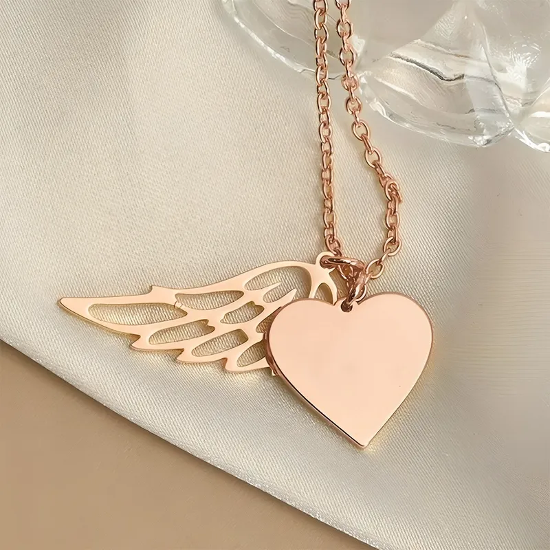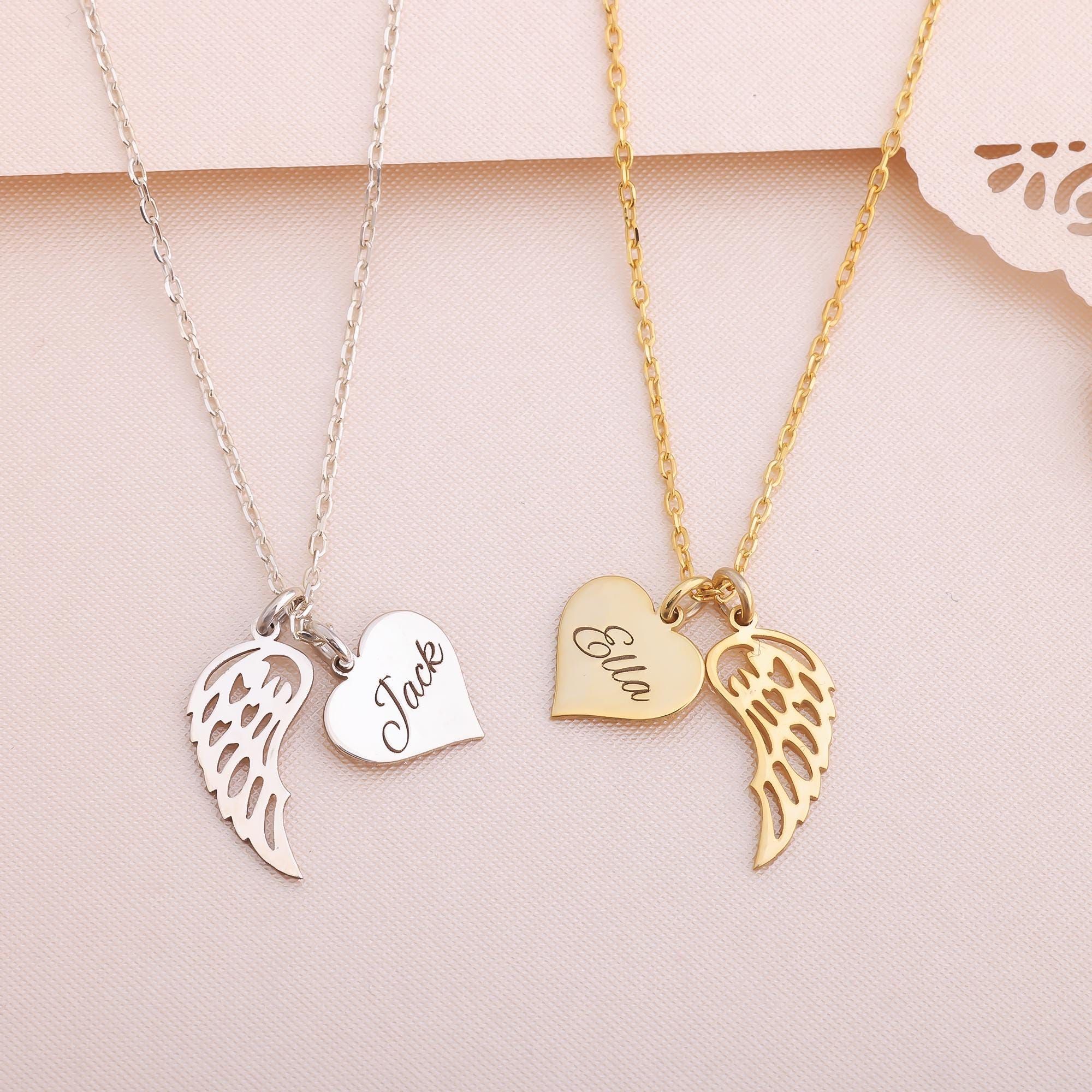 Namenskette in Herzform mit Flügeln, personalisierte Gedenkkette mit Engelsflügeln