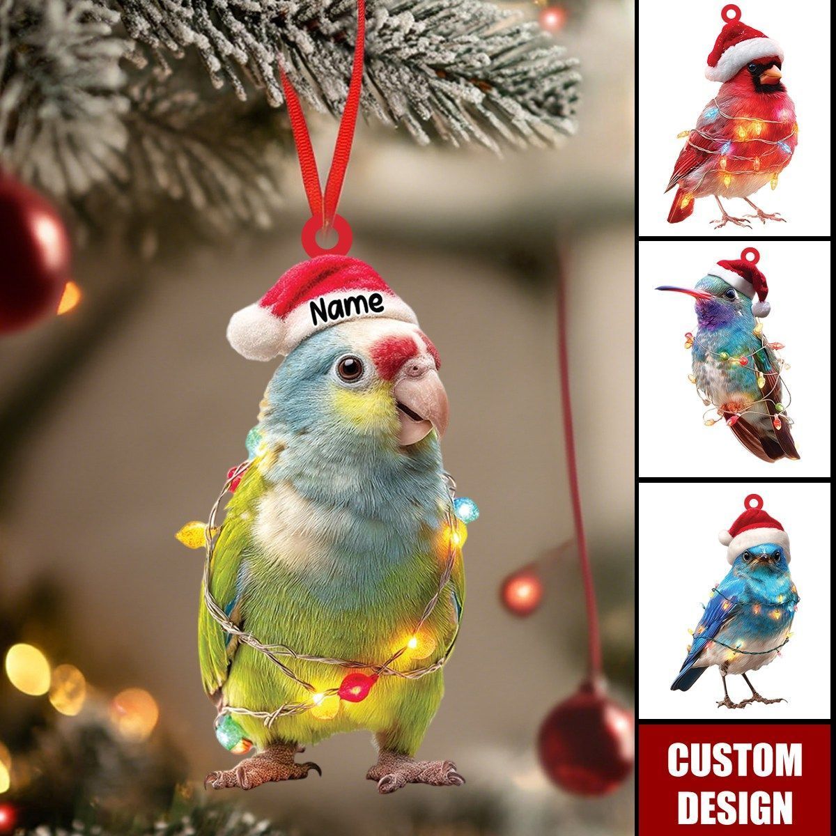 Personalisiertes Vogelornament Weihnachtsgeschenk, Personalisiertes Vogelornament mit Weihnachtsmannmütze, Weihnachtsbaumschmuck für Vogelliebhaber