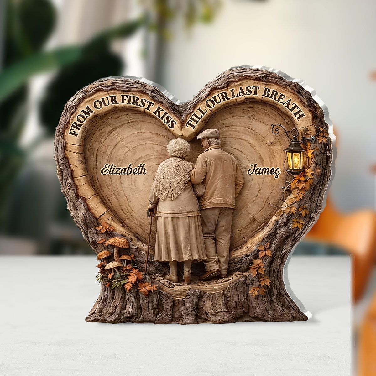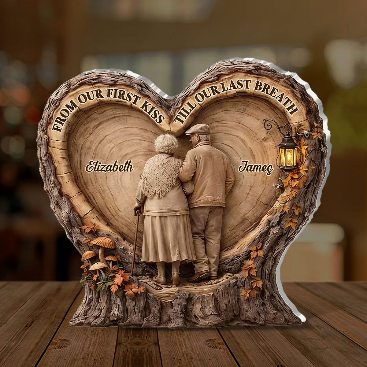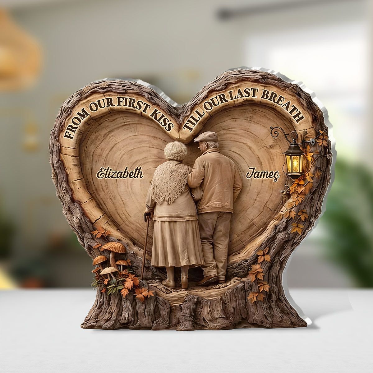 Personal isiert von unserem ersten Kuss bis zu unserem letzten Atemzug Älteres Paar aus Holz Herz Acryl Plakette | Custom Name Anniversary Keeps ake