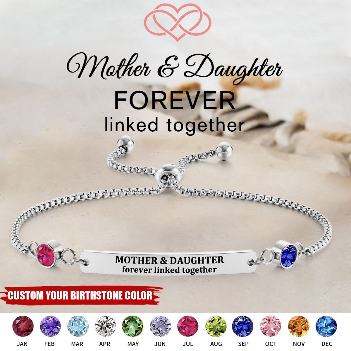 Personal isierte Mutter & Tochter für immer miteinander verbunden Custom Birth stones Armband