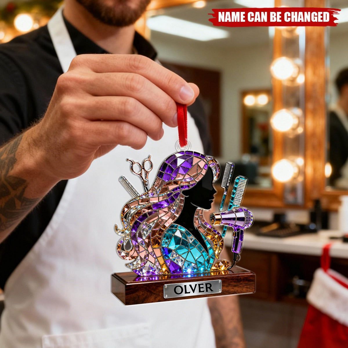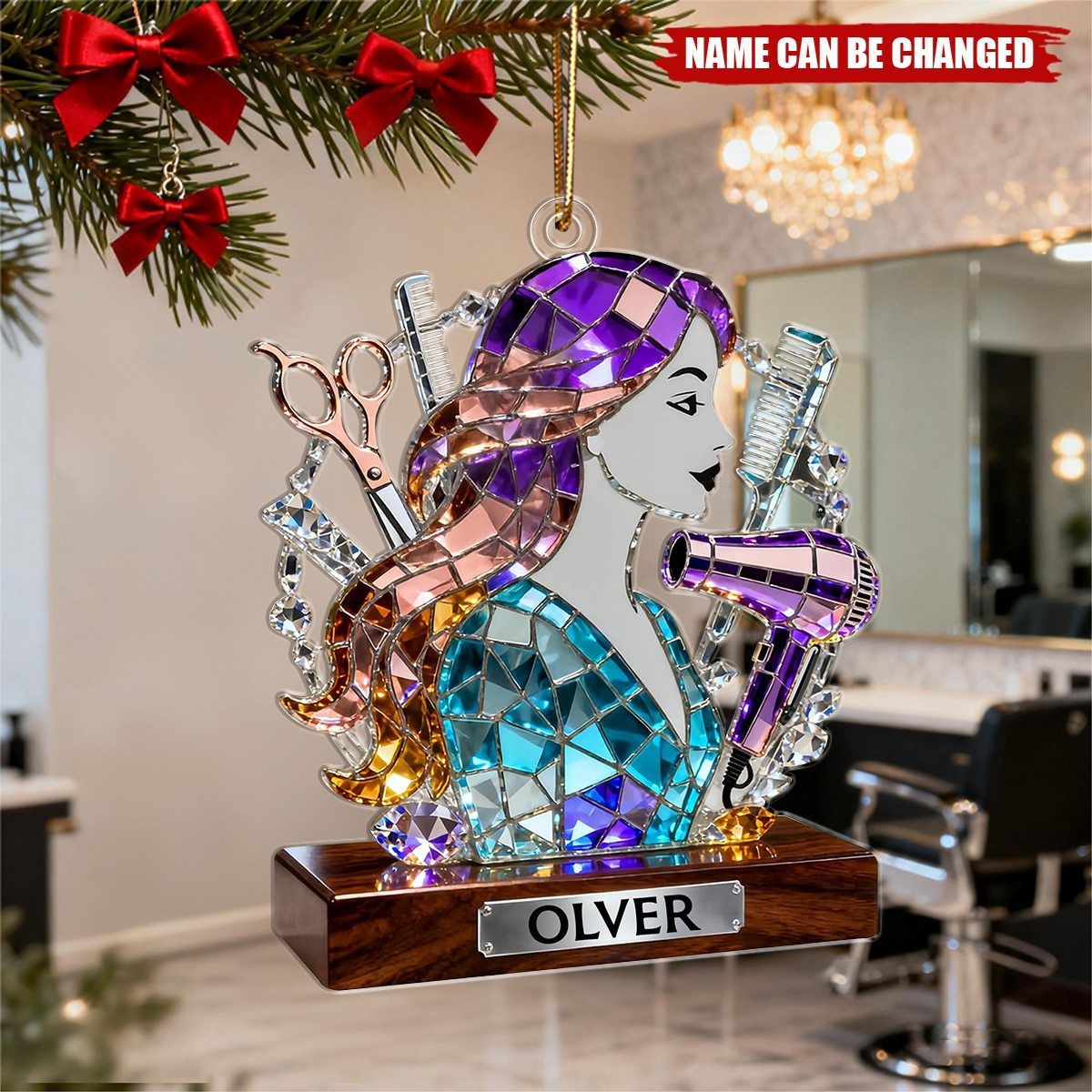 Personalisierter Weihnachtsbaumschmuck für Friseurinnen, Geschenkidee für Friseursalons, Schmuck für Friseurinnen