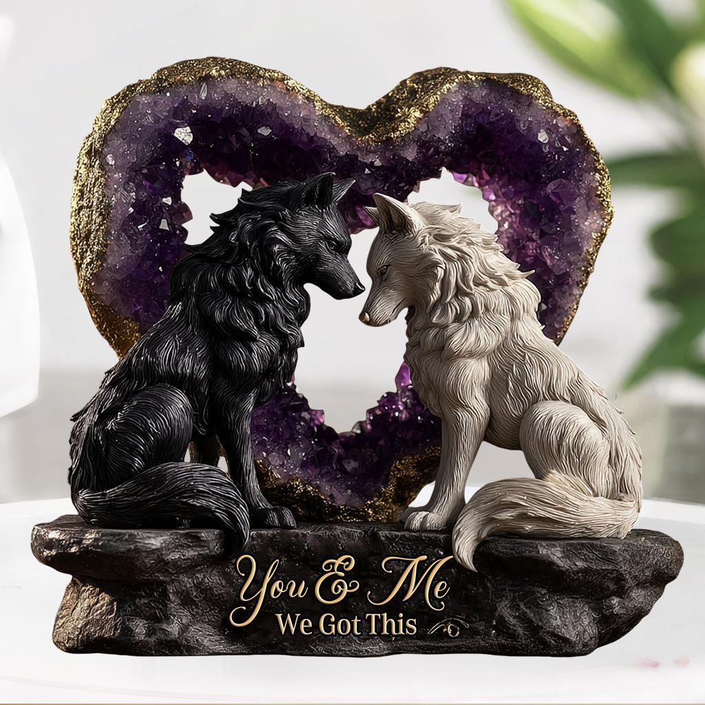 Personal isierte Wolf Paar Acryl Plakette | Du & Ich Wir haben dieses Amethyst Herz Liebe Andenken